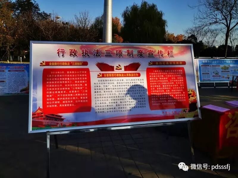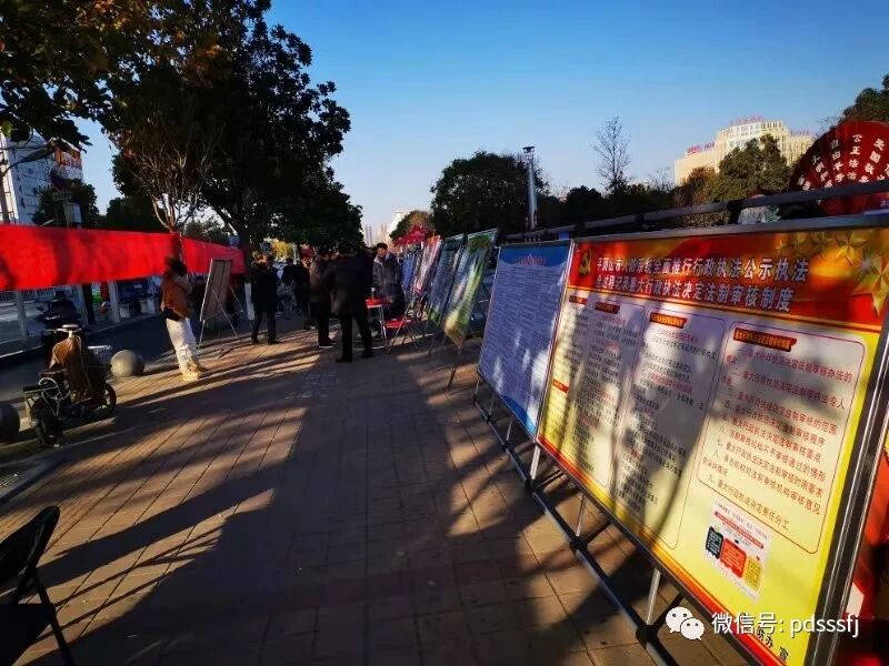 按照市法治政府建设领导小组办公室统一部署,12月4日,市直各行政执法部门在鹰城广场集中宣传行政执法公示制度执法全过程记录制度重大行政执法决定法制审核制度,这次宣传活动是我市贯彻落实国务院、省政府关于全面推进行政执法“三项制度”的重要举措,为确保宣传活动取得实效,共制作宣传展板20余块,重点宣传推进行政执法“三项制度”的重要意义、工作目标、实施步骤、推进举措、工作要求等内容,给社会群众阐明了行政执法“三项制度”为什么推、推什么、怎么推,为我市全面推行行政执法“三项制度”营造了良好的社会氛围。