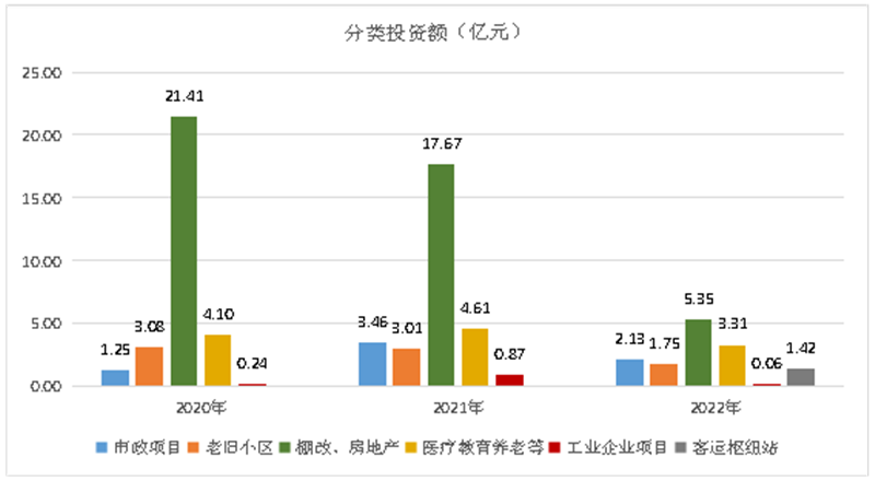 我中心按照投资额,分别绘制了近三年招标控制价备查项目的总投资额和分类投资额柱状图,一定程度上反映了政策调整和疫情影响下国有投资三年来的变化情况。